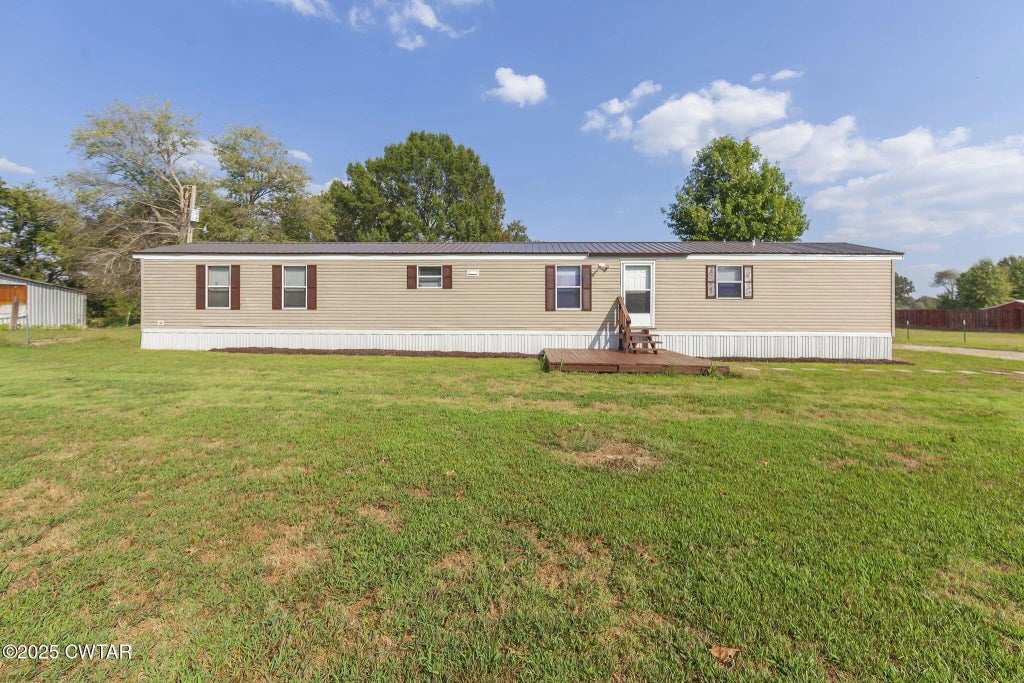 Ready to buy a newly updated home in a growing and thriving area? Hitting the market for sale just outside of the city limits of the desirable Martin, Tennessee, this move-in ready home is situated on over 1.1 level, grassy acres.3 bedroom 2 full bathroom home features a sought after split floorplan. The primary suite features a stylish barn entry door, a walk-in shower, double vanity sinks, a private water closet, dual closet doors, and a ceiling fan with remote. The large living room opens to the galley style kitchen with built-in pantry, built-in hutch/coffee bar area, sink with window above, electric range with venthood, and dishwasher. The kitchen is open to the dining area which features two large windows overlooking the backyard with a great, uninterrupted view. The laundry room has a washer and electric dryer hookups, cabinets for storage, and a door that leads directly to the back patio, ideal for grilling, dining, and entertaining. The other two bedrooms have new light fixtures, lots of natural light, and a dedicated closet for each. There is a guest bathroom with a tub-shower combo in the hall with easy access from the living room. The home has a whole house heating, ventilation, and air (HVAC) system and solid surface flooring throughout to accommodate buyers with allergies. The home has an inviting wooden front porch with newly refreshed stain, newly refreshed painted shutters, brand new skirting around the home, a durable metal roof, mature trees, 2 sheds, and an inground storm shelter for peace of mind. Less than 10 minutes to The University of Tennessee at Martin. Make the call today to make this one yours!